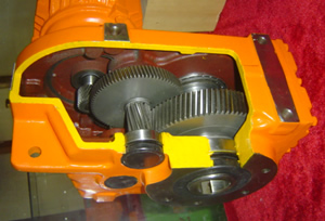 4.強度高、體積?。合潴w采用高強度鑄鐵。齒輪及齒輪軸采用氣體滲碳淬火精磨工藝,因而單位體積承載能力高。